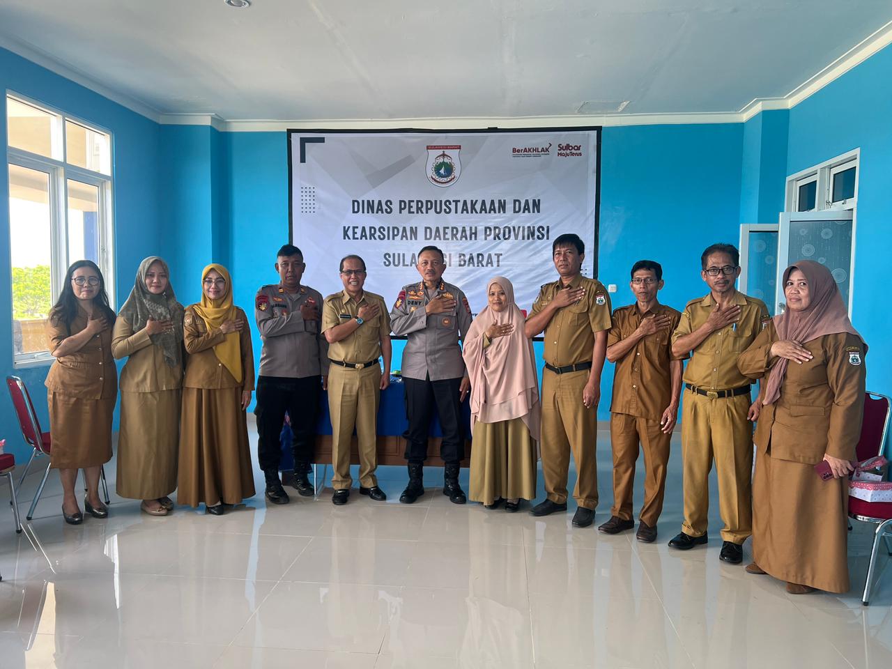 Ratusan buku yang diserahkan kepala dinas perpustakaan dan kearsipan Provinsi Sulbar Drs. Haeruddin Anas secara simbolis diterima langsung oleh Direktur Polairud Polda Sulbar Kombes Pol. Deny Pudjianto, Senin (29/1/24) di Kantor Dinas Perpustakaan dan Kearsipan Pemrov. Sulbar.