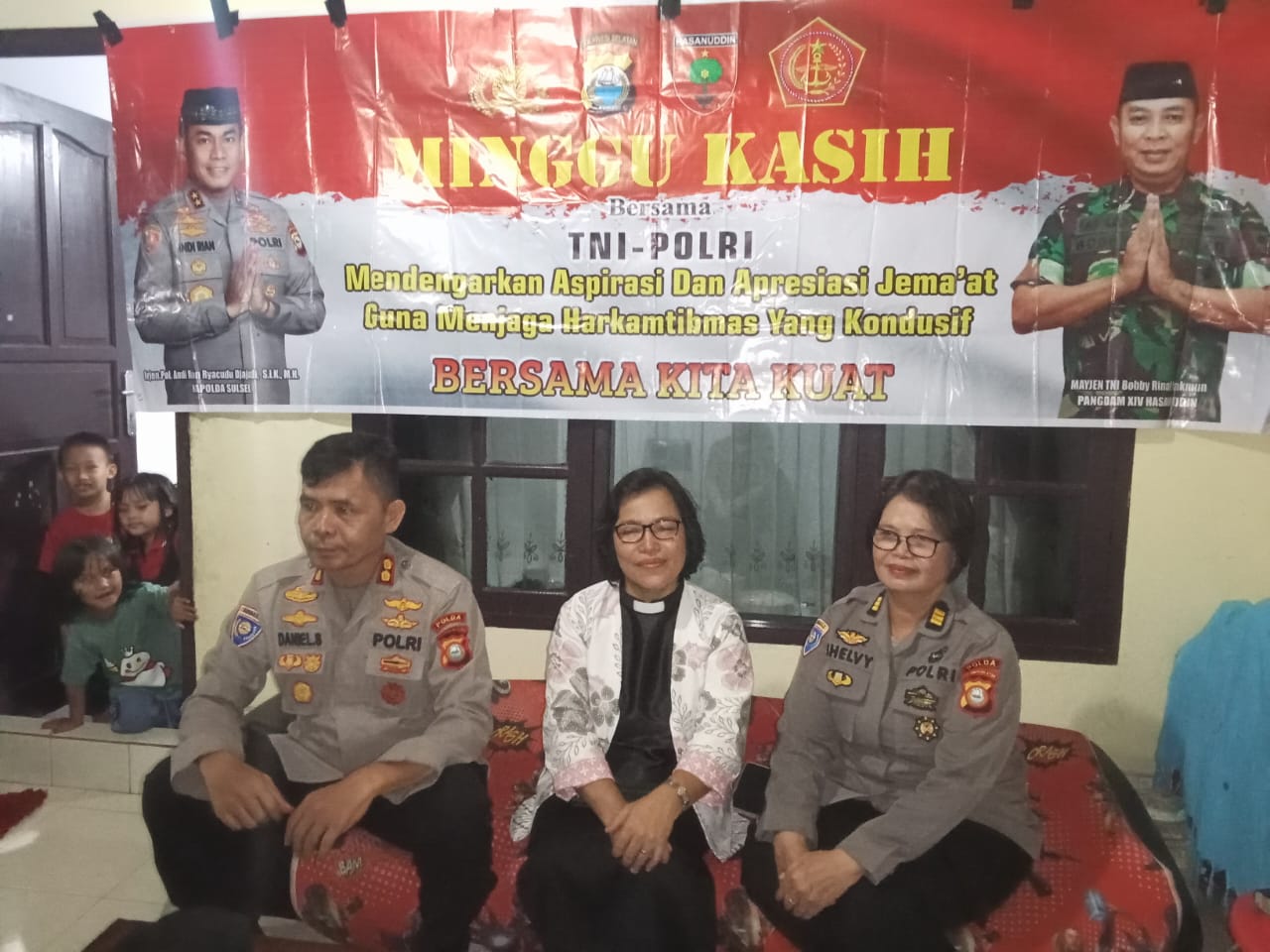 Kegiatan Minggu Kasih dalam rangka membangun sinergitas dengan Masyarakat khususnya Jemaat Gereja Toraja Rama Jl. Dirgantara Kel. Karampuang Kec. Panakkukang Kota Makassar sekaligus mendengarkan keluhan, saran serta kritik, untuk membangun kinerja Polri yang lebih baik.