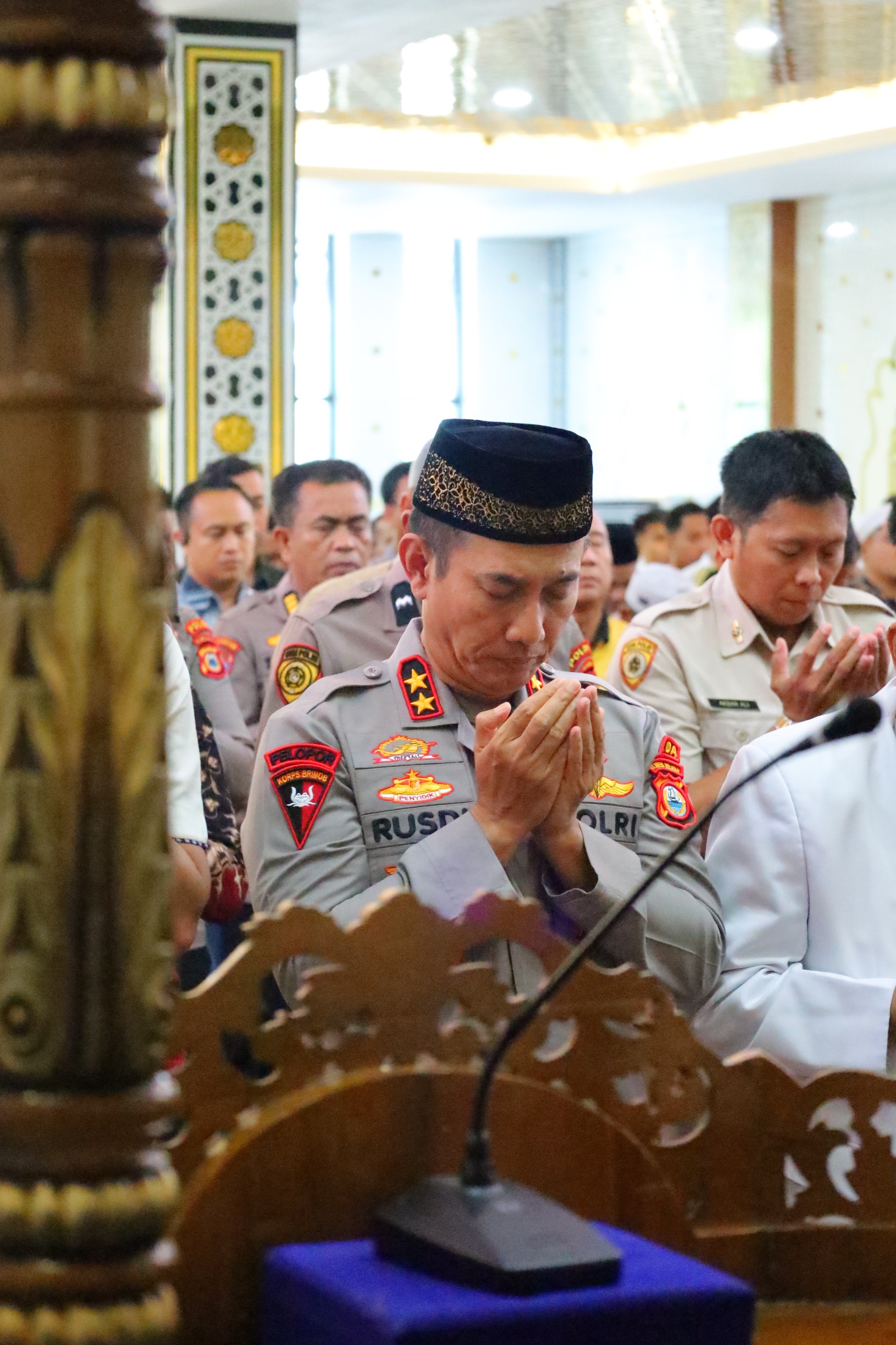 Polda Sulawesi Selatan menggelar Shalat Ghaib di Masjid Nur Syuhada Mapolda Sulsel, Jumat (29/08/25). Kegiatan ini dilaksanakan sebagai bentuk kepedulian, penghormatan, serta doa bersama bagi korban yang meninggal dunia pada peristiwa unjuk rasa buruh di Jakarta, 28 Agustus 2025 lalu.