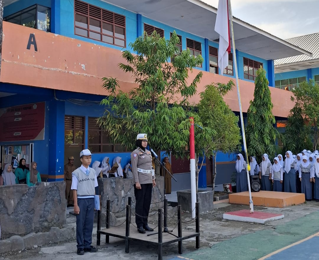 Sebagai bagian dari amanat upacara, Ipda Sumiati juga menyampaikan pentingnya budaya tertib berlalu lintas kepada para pelajar.