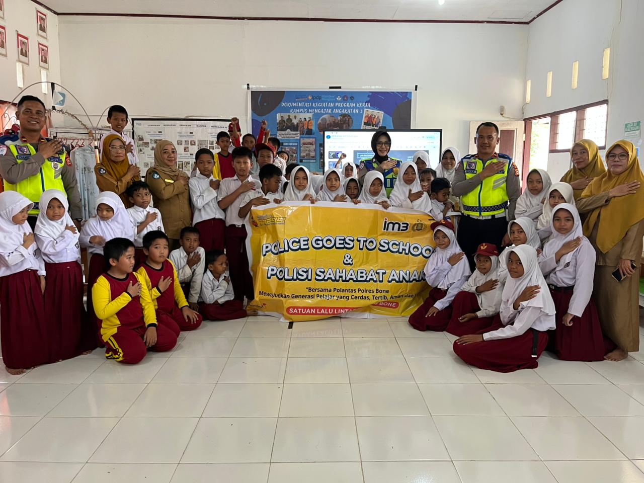Kanit Kamsel Satlantas Polres Bone Ipda Chandra Wijaya bersama Kaur Mintu Ipda Ishak Yaqub menggelar kegiatan Police Goes to School di Sekolah Dasar Negeri 40 Maccope, Watampone, Kabupaten Bone.
