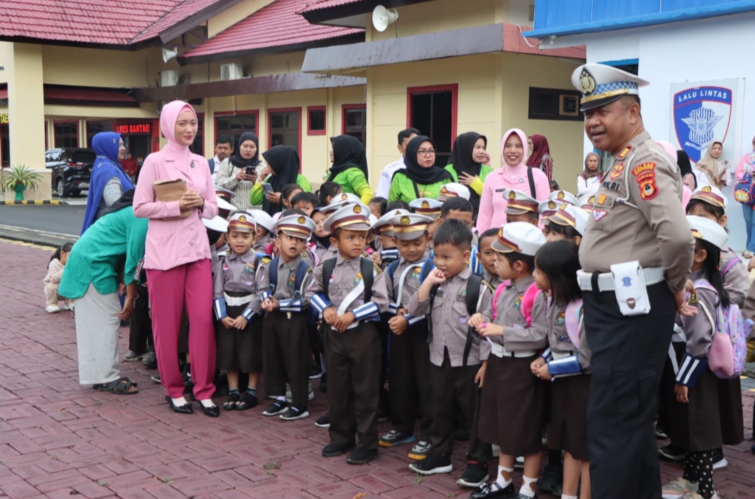 Pada Selasa (21/5/2025), puluhan siswa-siswi Taman Kanak-kanak mendapatkan kesempatan berharga untuk berinteraksi langsung dengan para anggota Satlantas Polres Bantaeng di halaman Mako Polres.