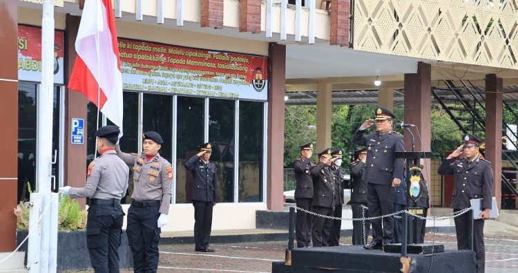 Wakapolres Barru, Kompol La Makkanenneng, S.E mewakili Kapolres AKBP Dodik Susianto, S.I.K, bertindak sebagai Inspektur Upacara, membacakan amanat serentak dari Kepala Badan Pembinaan Ideologi Pancasila (BPIP).