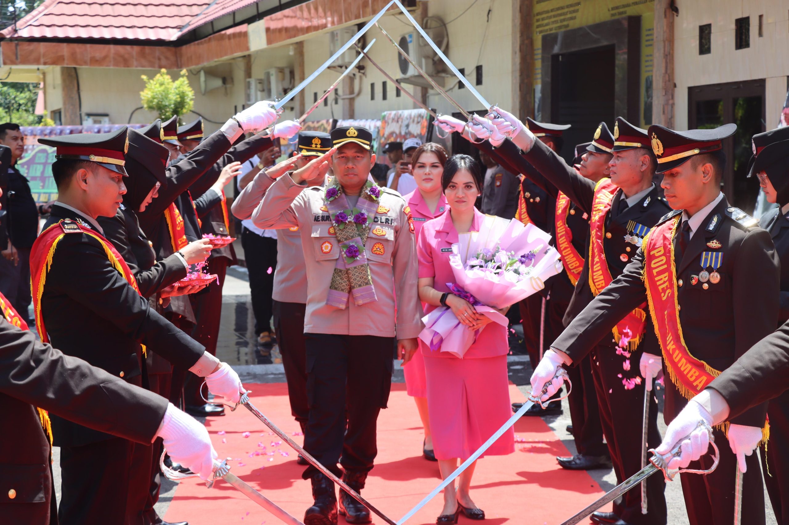 Pejabat lama AKBP Andi Erma Suryono didampingi istri Ny.Eli Andi Erma pamit dan menyampaikan terimakasih kepada keluarga besar Polres Bulukumba atas kebersamaan selama bertugas di Butta Panrita Lopi Bulukumba.