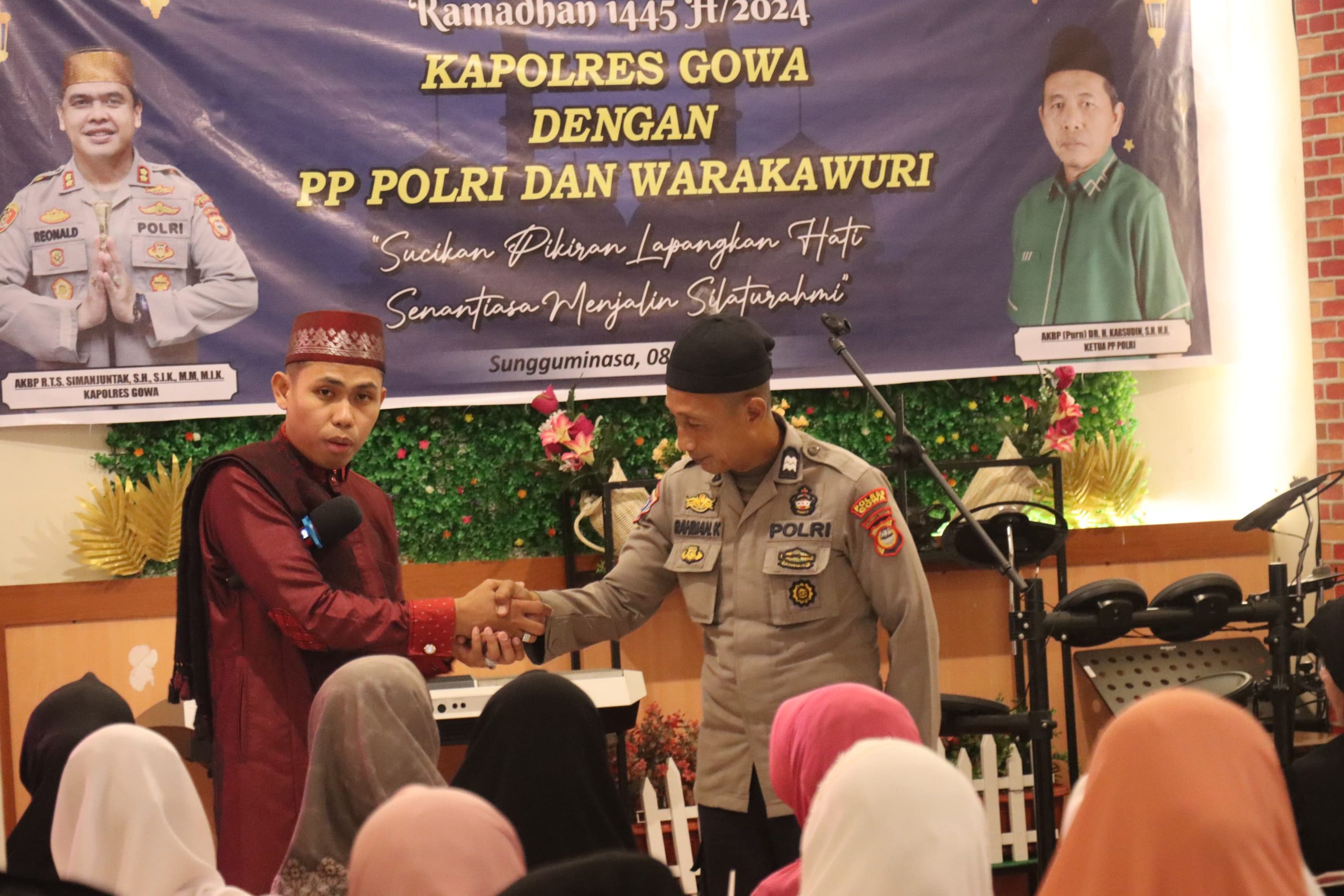 GOWA – Polres Gowa menggelar acara Buka Puasa Bersama Ramadan 1445 H yang dihadiri oleh Purnawirawan Polri dan Warakawuri. Acara berlangsung di Cafe Dewi, Jalan Agussalim Sungguminasa Kecamatan Somba Opu Kabupaten Gowa dengan tema “Sucikan Pikiran, Lapangkan Hati, Senantiasa Menjalin Silaturahmi”, Senin (08/04/2024).