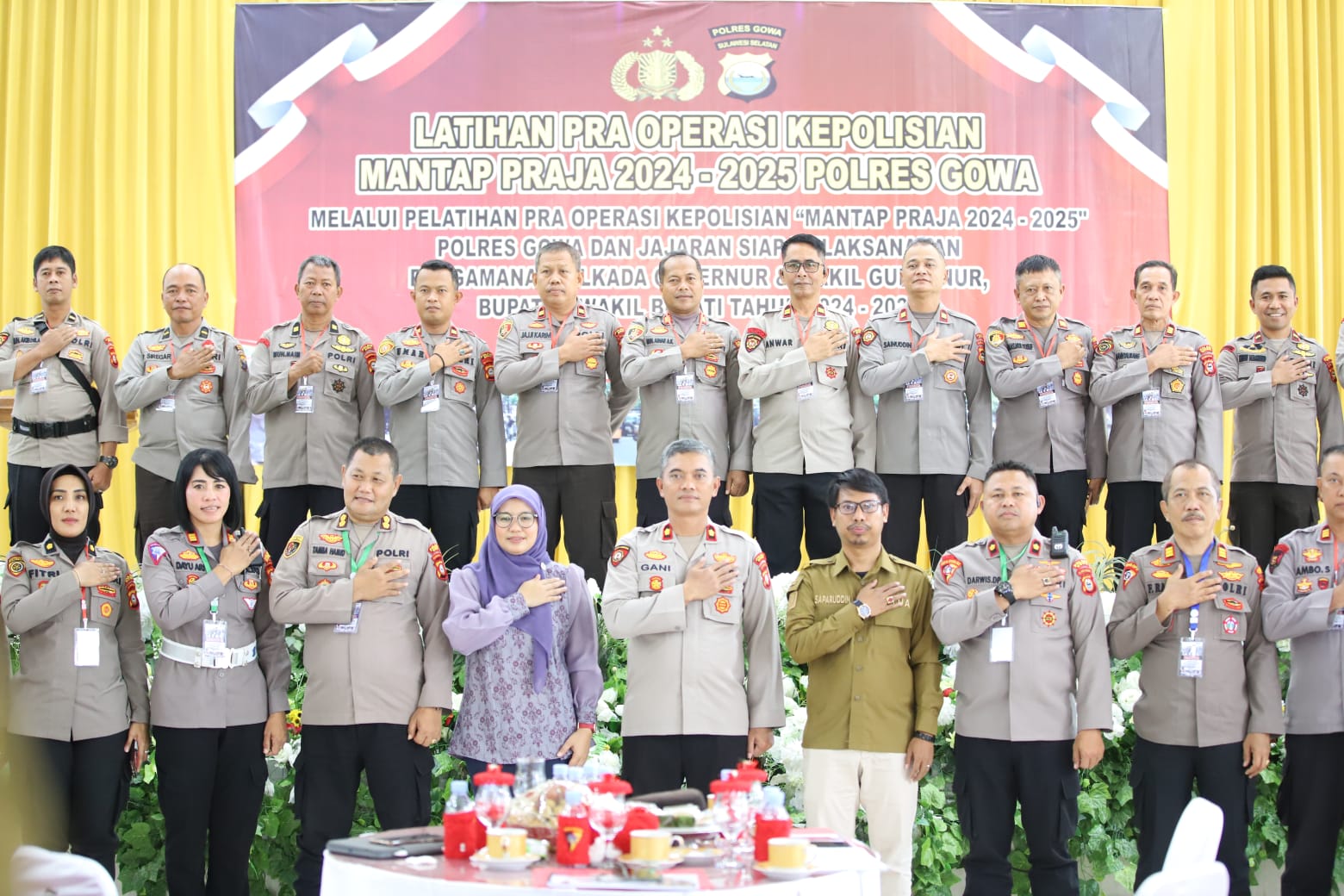 Dengan tema “Melalui Pelatihan Pra Operasi Kepolisian ‘Mantap Praja 2024-2025’, Polres Gowa dan Jajaran Siap Melaksanakan Pengamanan Pilkada Gubernur & Wakil Gubernur, Bupati & Wakil Bupati Tahun 2024-2025”, latihan ini bertujuan untuk mempersiapkan personel dalam mengamankan Pilkada yang akan datang.