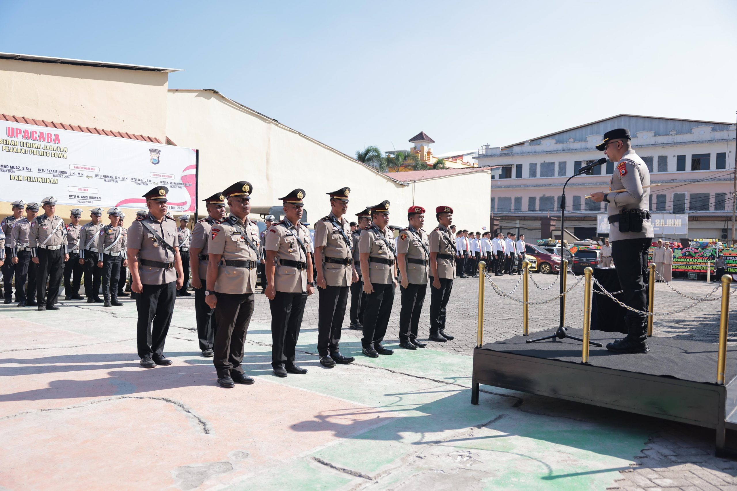 Dalam upacara tersebut, jabatan Kasat Samapta diserahterimakan dari AKP Aslamuddin kepada AKP Cahyadi, S.H., M.H. Kemudian, jabatan Kasat Lantas diserahkan dari IPTU Bahrul, S., S.H., M.M. kepada AKP Muhammad Muaz, S.Sos., sedangkan Kasat Narkoba dari IPTU Syarifuddin, S.H., M.H. kepada IPTU Firman, S.H., M.H.