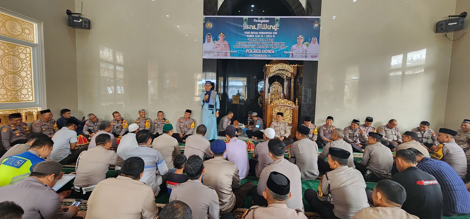 Isra Mikraj dimulai dengan pembacaan ayat suci al-Quran oleh AIPTU Rustaman dan Saritilawah oleh BRIPTU Iki Wahyunita. Acara dilanjutkan dengan sambutan oleh Wakapolres Gowa KOMPOL Soma Mihardja, S.Sos, MM, serta ceramah agama oleh Ustadz Dr. Saad Kafrawi, S.H., M.H.