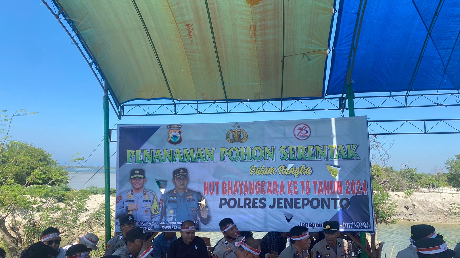 Jeneponto – Dalam rangka memperingati HUT Bhayangkara ke-78, Polres Jeneponto bersama Pemerintah Daerah Jeneponto dalam hal ini Pemerintah Desa Bungeng Kecamatan Batang Kabupaten Jeneponto menggelar kegiatan bakti sosial penanaman pohon di pesisir pantai, pada Kamis, 27 Juni 2024.
