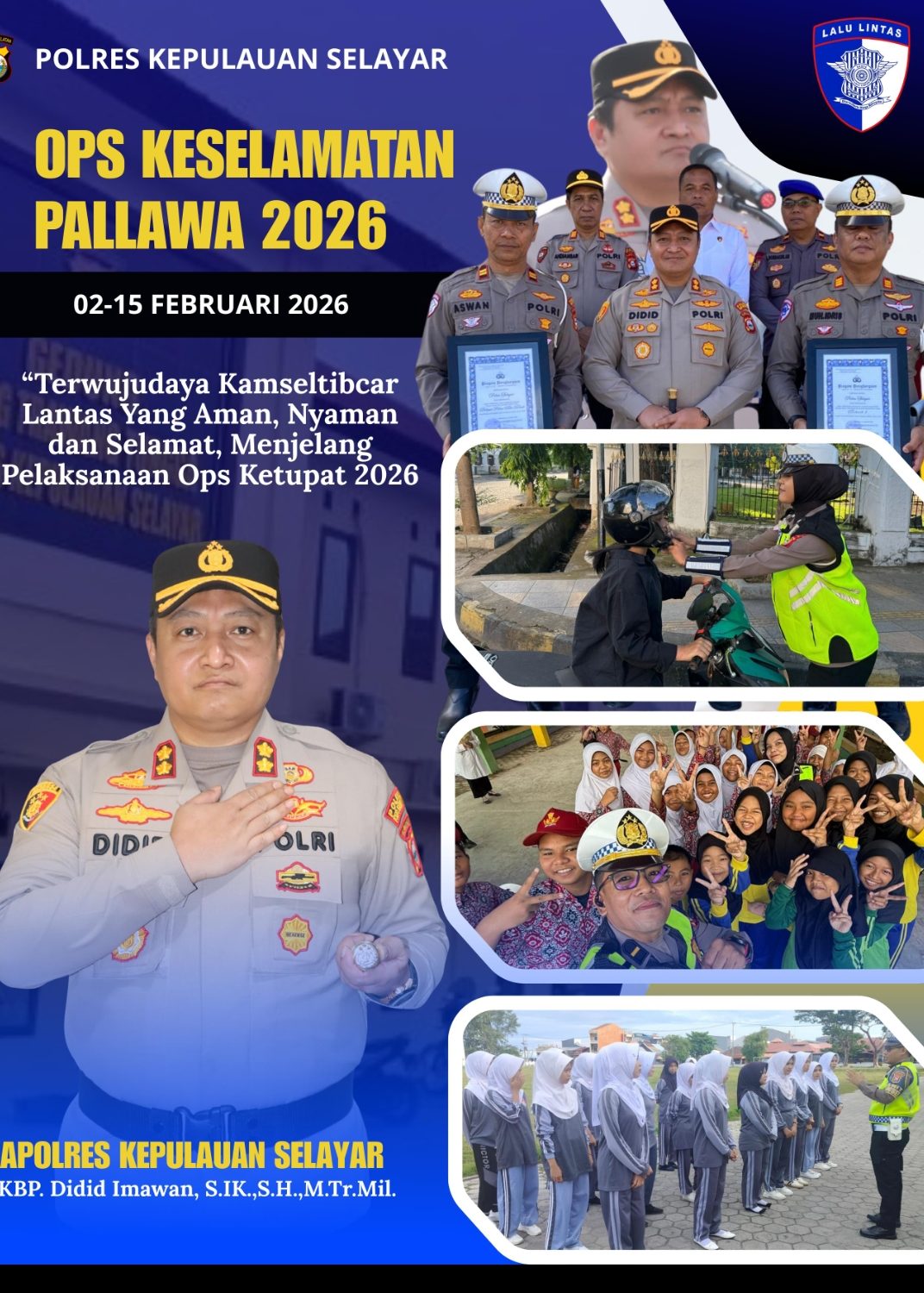 Polres Kepulauan Selayar mengimbau seluruh masyarakat agar mendukung Operasi Keselamatan Pallawa 2026 dengan selalu mematuhi aturan lalu lintas, menggunakan perlengkapan keselamatan berkendara, serta mengutamakan keselamatan diri sendiri dan pengguna jalan lainnya.