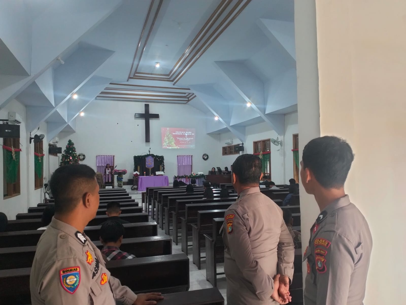 Pengamanan ini dilakukan dalam rangka mendukung kelancaran ibadah Minggu rutin serta perayaan masa raya Natal 2024 dan Tahun Baru 2025.