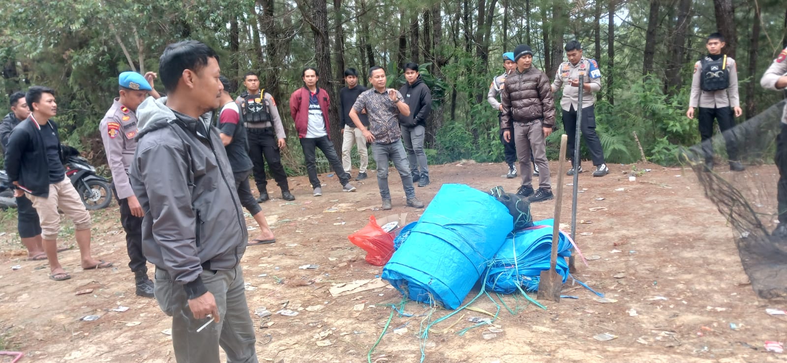 Dalam kegiatan tersebut, petugas turut mengamankan sejumlah barang yang diduga digunakan dalam praktik perjudian, di antaranya 3 (Tiga) lembar tenda warna biru yang dijadikan atas arena judi sabung ayam, 3 (tiga) gulung terpal warna hitam yang menjadi dinding pembatas arena judi sabung ayam, 1 (satu) set perlengkapan judi bola-bola, dan 2 (dua) buah sekop kecil.