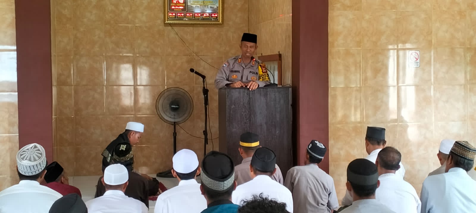 Mereka mem beri pesan dan himbauan Kamtibmas kepada para Jama’ah Masjid di Pimpin Kasat Binmas Polres Palopo AKP Syamsul Bahri, S.Pd, Polisi penggiat agama (Polisi Santri), Kanit Binmas Polsek Waru dan Tim Humas Polres Palopo.