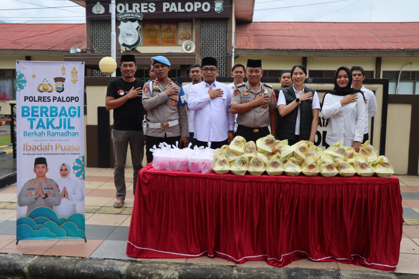 Ratusan paket takjil dibagikan kepada para pengendara roda dua, roda empat, serta masyarakat yang melintas di depan Mako Polres Palopo menjelang waktu berbuka puasa.