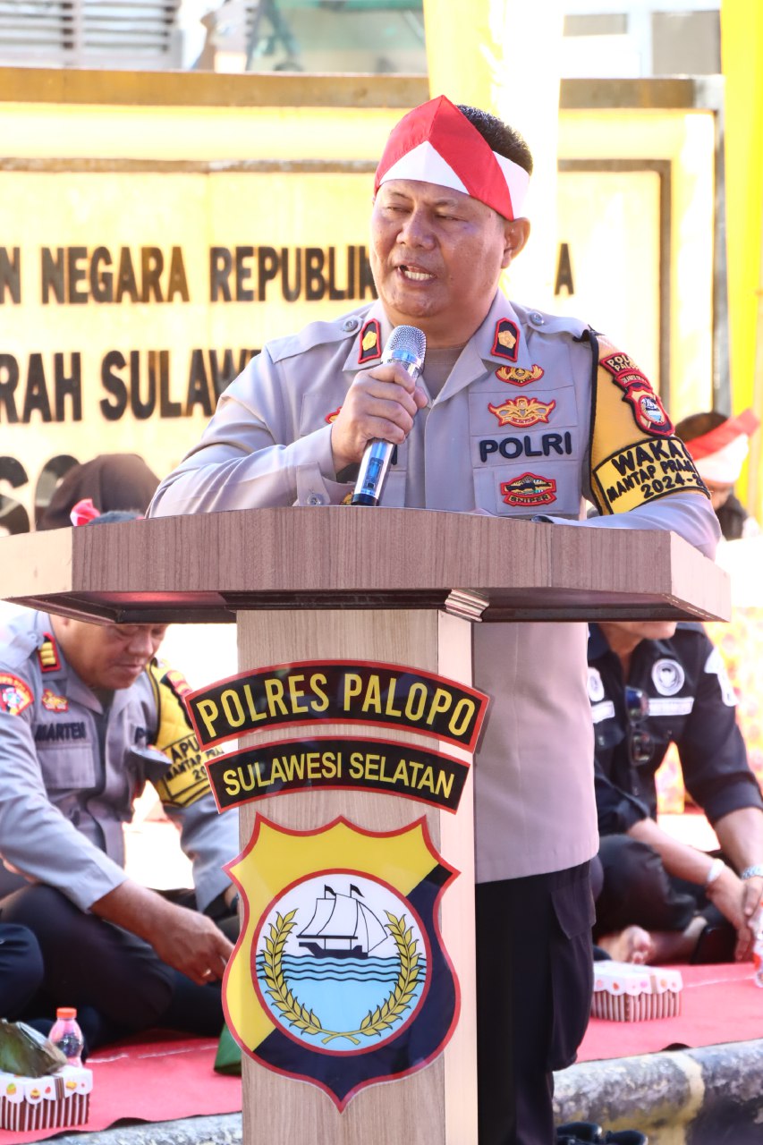 PALOPO – Polres Palopo menggelar Cooling System Pilkada Damai Tahun 2024, Rabu (11/9/2024) di depan Markas Komando Polres Palopo, Jalan Opu Tosappaile, Kelurahan Boting, Kecamatan Wara.