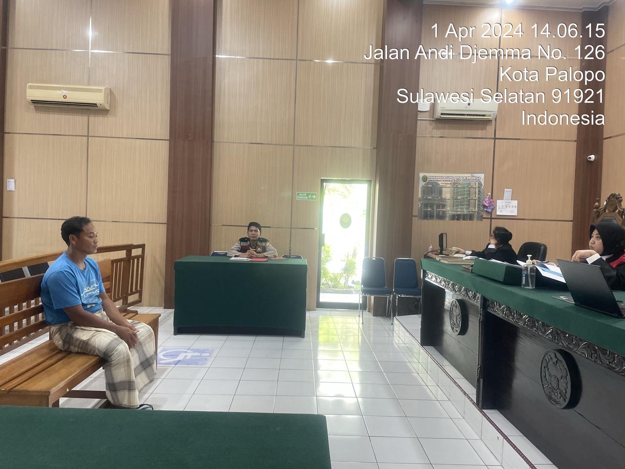 Dalam sidang tersebut duduk sebagai terdakwa Alo Dappi. Dia disidang di Ruang Sidang Kusuma Atmaja Pengadilan Negeri Palopo Kelas IB.