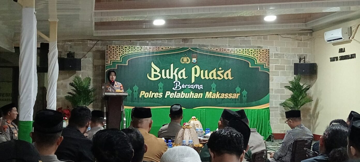Kapolres Pelabuhan Makassar, AKBP Rise Sandiyanti, S.H., S.I.K, dalam sambutannya mengajak seluruh elemen masyarakat untuk bersama-sama menciptakan suasana yang kondusif di wilayah hukum yang dipimpinnya. Ia menekankan pentingnya kolaborasi antara aparat keamanan dan seluruh komponen masyarakat dalam menjaga stabilitas wilayah, terlebih selama Ramadan yang identik dengan meningkatnya aktivitas masyarakat.