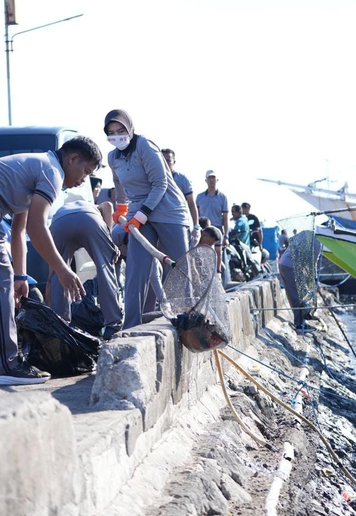 Dengan semangat gotong royong, para personel tampak antusias memungut sampah plastik, botol bekas, hingga sisa limbah rumah tangga yang menumpuk di sekitar area pelabuhan dan garis pantai Paotere.
