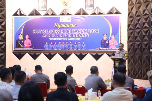 Pinrang – Polres Pinrang menyelenggarakan acara syukuran untuk memperingati Hari Ulang Tahun (HUT) Korps Pegawai Republik Indonesia (Korpri) ke-53 tahun 2024. Bertempat di Aula Wicaksana Laghawa Polres Pinrang, Selasa (03/12/2024).