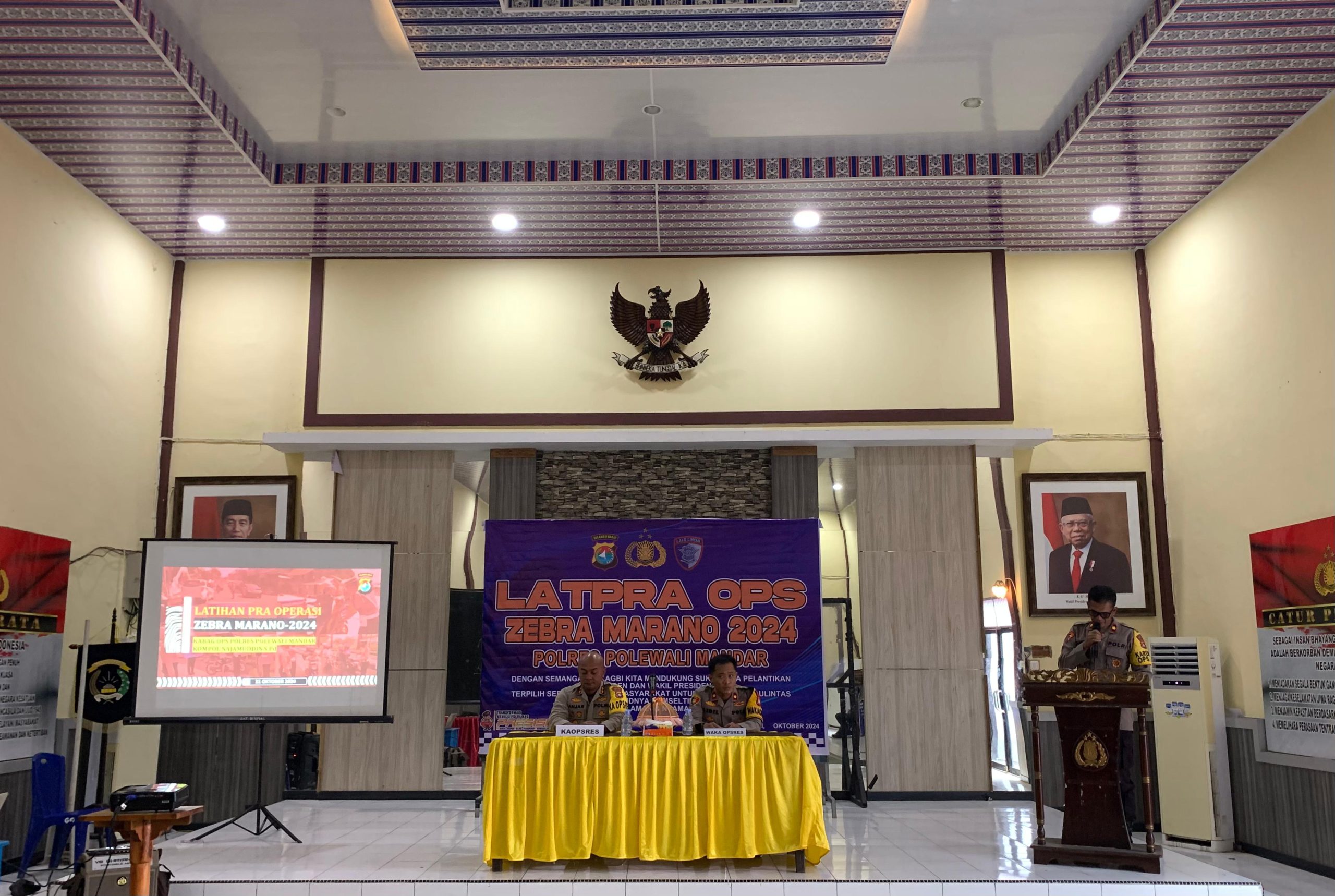 POLMAN — Kapolres Polman Akbp Anjar Purwoko memimpin kegiatan latihan pra operasi (lat pra ops) Zebra Marano tahun 2024 di Aula Rupatama Polres Polman. Senin (14/10/24).