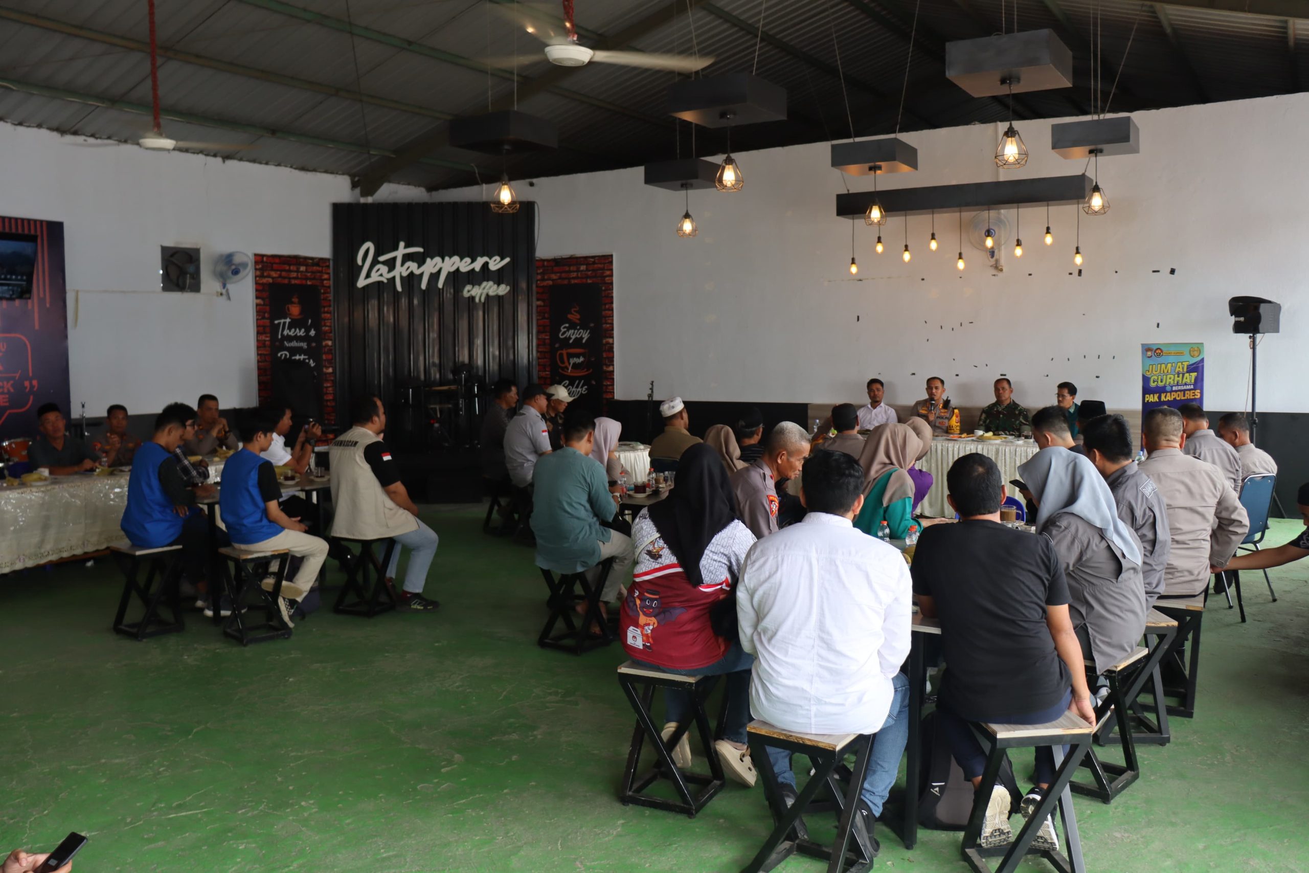 SOPPENG – Polres Soppeng kembali menggelar kegiatan Jum’at Curhat yang di laksanakan di Cafe Latappere Kelurahan Pajalesang Kec.Lililau Kab.Soppeng,Jumat tanggal 4 Oktober 2024 mulai pukul 10.30 wita