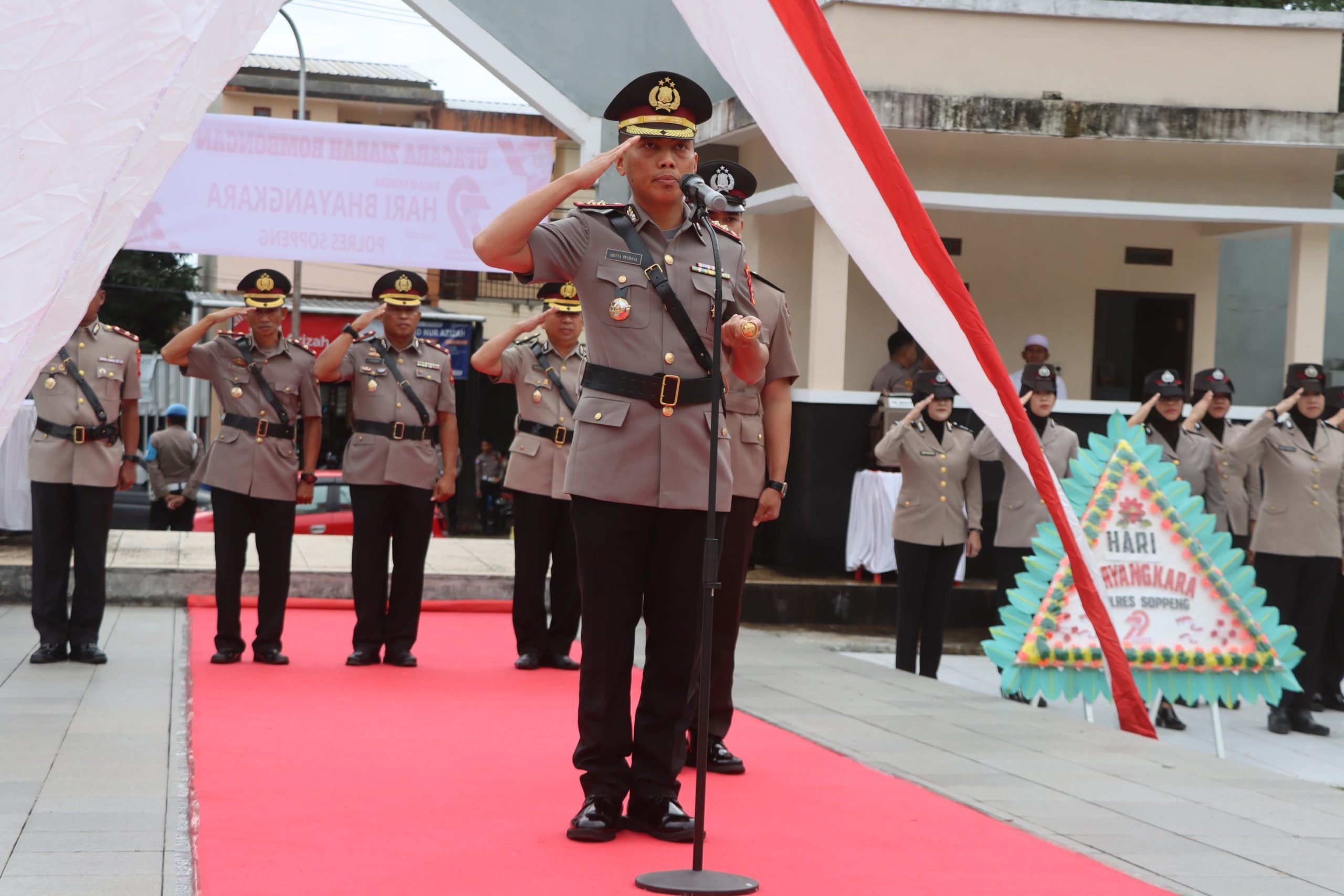 Dalam sambutannya, Kapolres Soppeng AKBP Aditya Pradana, S.I.K., M.I.K. menegaskan pentingnya mengenang perjuangan para pahlawan serta menanamkan nilai-nilai pengabdian dan loyalitas kepada bangsa dan institusi Polri.