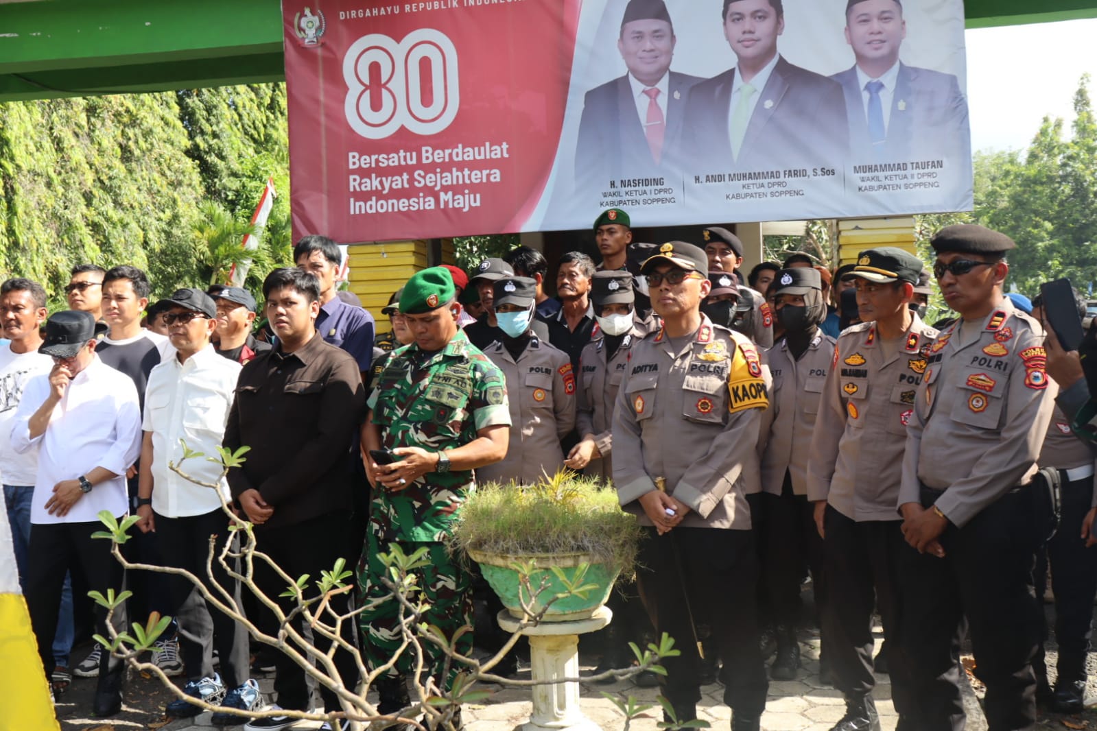 Kapolres Soppeng menyampaikan bahwa Polri akan selalu hadir untuk menjamin keamanan masyarakat dalam menyampaikan aspirasi.