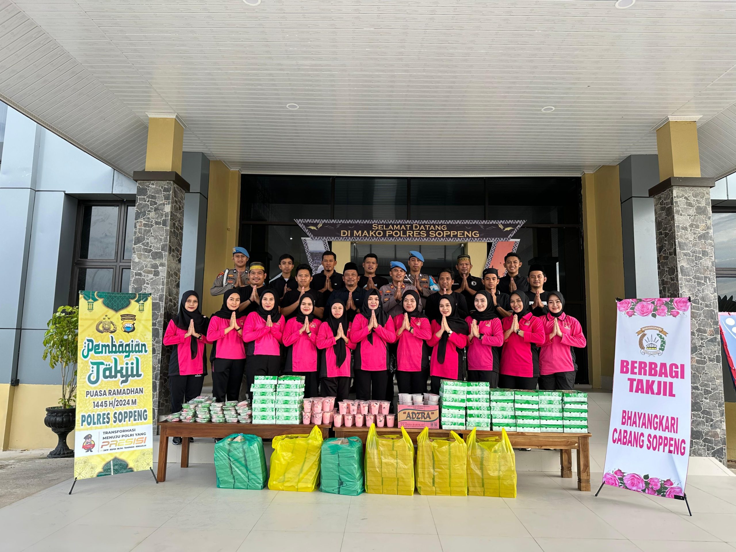 SOPPENG – Personil Sat Intelakam bersama Sie Propam Polres Soppeng Beserta Bhayangkari melaksanakan pembagian Takjil menjelang berbuka puasa di bulan suci ramadhan 1445 H.Jumat tanggal 29 Maret 2024 pukul 17.00 wita di Jl. Kemakmuran Kel. Lemba Kec. Lalabata.