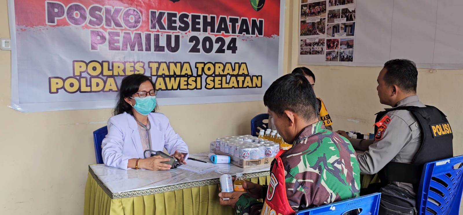 Menurut Kapolres Tana Toraja AKBP Malpa Malacoppo, bahwa untuk menjaga kesehatan personil yang telah melaksanakan pengamanan TPS baik dari petugas TNI – Polri termasuk petugas TPS, KPU dan Bawaslu, kembali menyediakan Posko layanan kesehatan di setiap PPK Kantor Kecamatan Kabupaten Tana Toraja