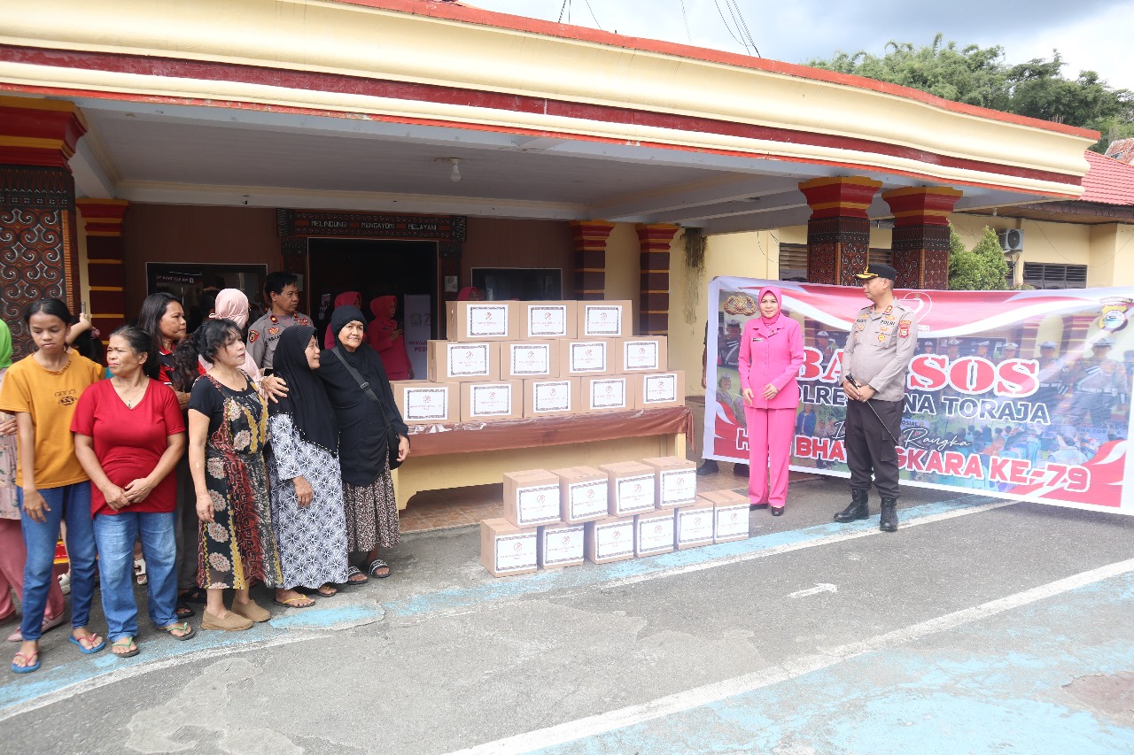 Dalam kegiatan tersebut, Kapolres Tana Toraja, AKBP Budi Hermawan, secara langsung menyerahkan bantuan sosial didampingi oleh Ibu Ketua Bhayangkari Cabang Tana Toraja dan para Pejabat Utama (PJU) Polres Tana Toraja.