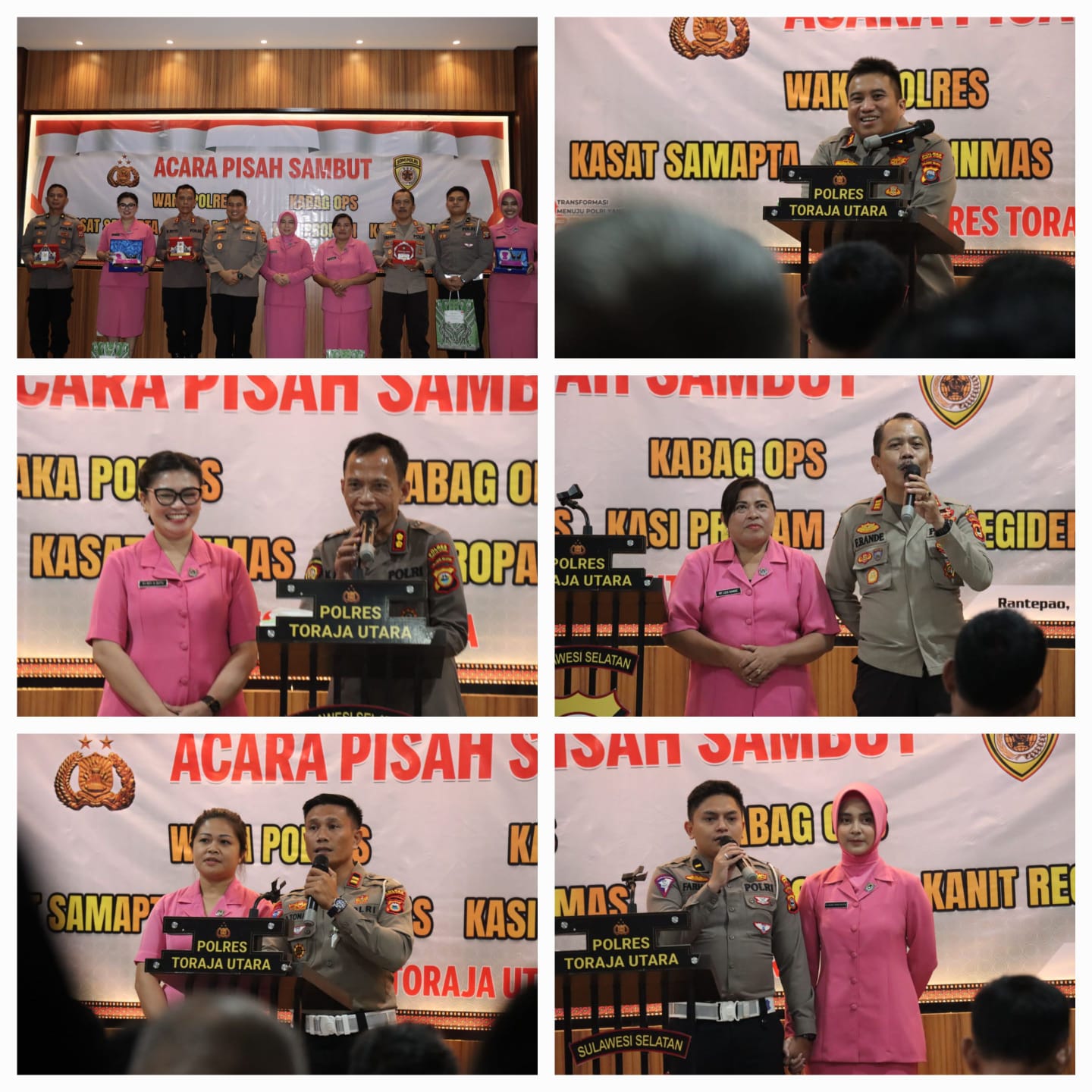 Adapun pejabat lama dan pejabat baru yang melaksanakan pisah sambut, yaitu AKBP Marthen Buttu yang sebelumnya menjabat sebagai Wakapolres Toraja Utara, AKP Ferasmus Rande yang sebelumnya menjabat sebagai Kasat Samapta, IPDA Farhan Sulistya, S.Tr.K., M.H yang sebelumnya menjabat sebagai Kanit Regident Sat Lantas, dan IPTU Anton Tonapa yang kini mulai menjabat sebagai Kanit Regident Sat Lantas Polres Toraja Utara.