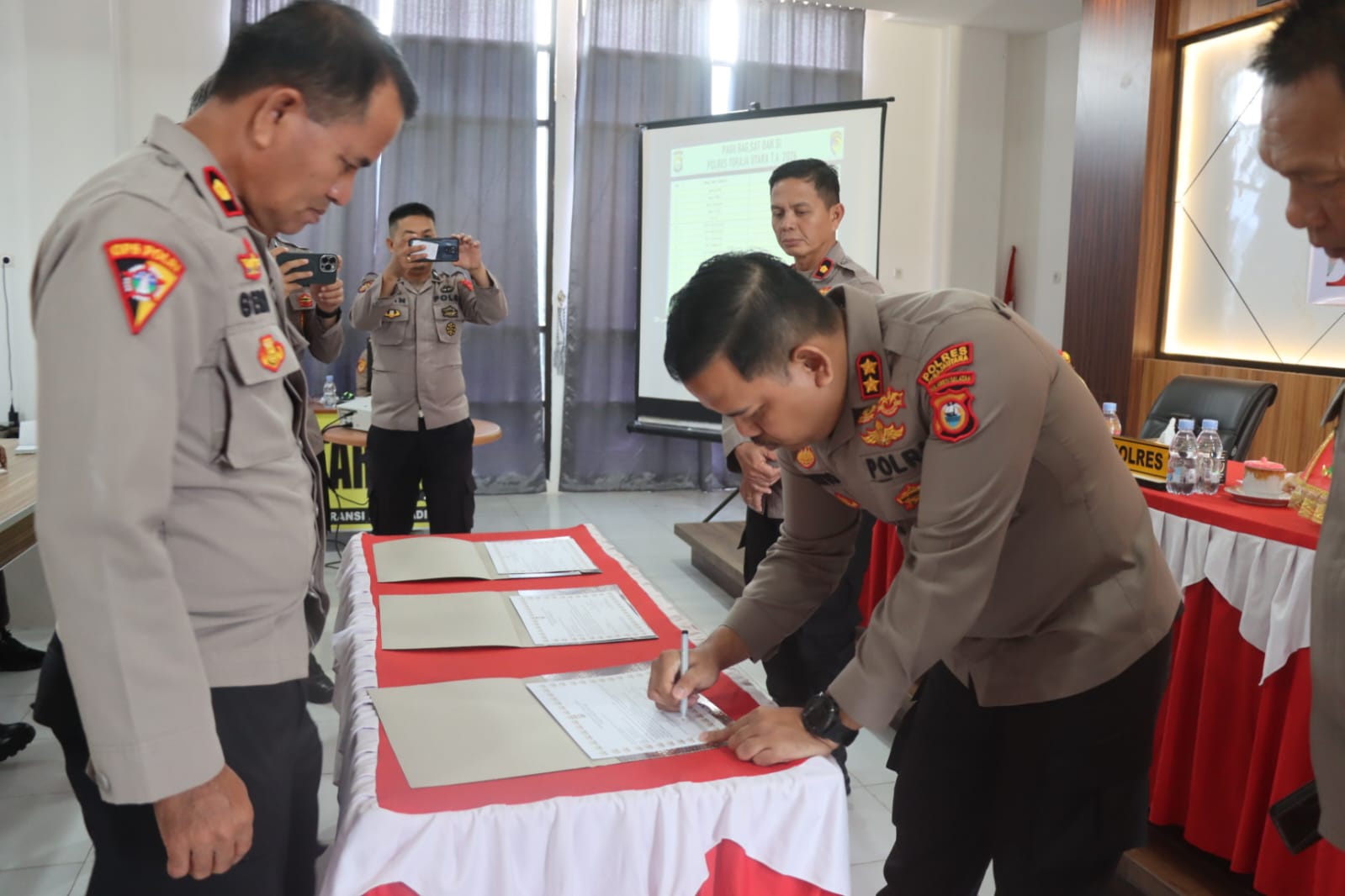 Rangkaian kegiatan kemudian dilanjutkan dengan penandatanganan Pakta Integritas oleh seluruh pejabat dan perwakilan satuan kerja sebagai bentuk komitmen bersama dalam mewujudkan tata kelola pemerintahan yang baik, bersih, dan berwibawa di lingkungan Polres Toraja Utara.