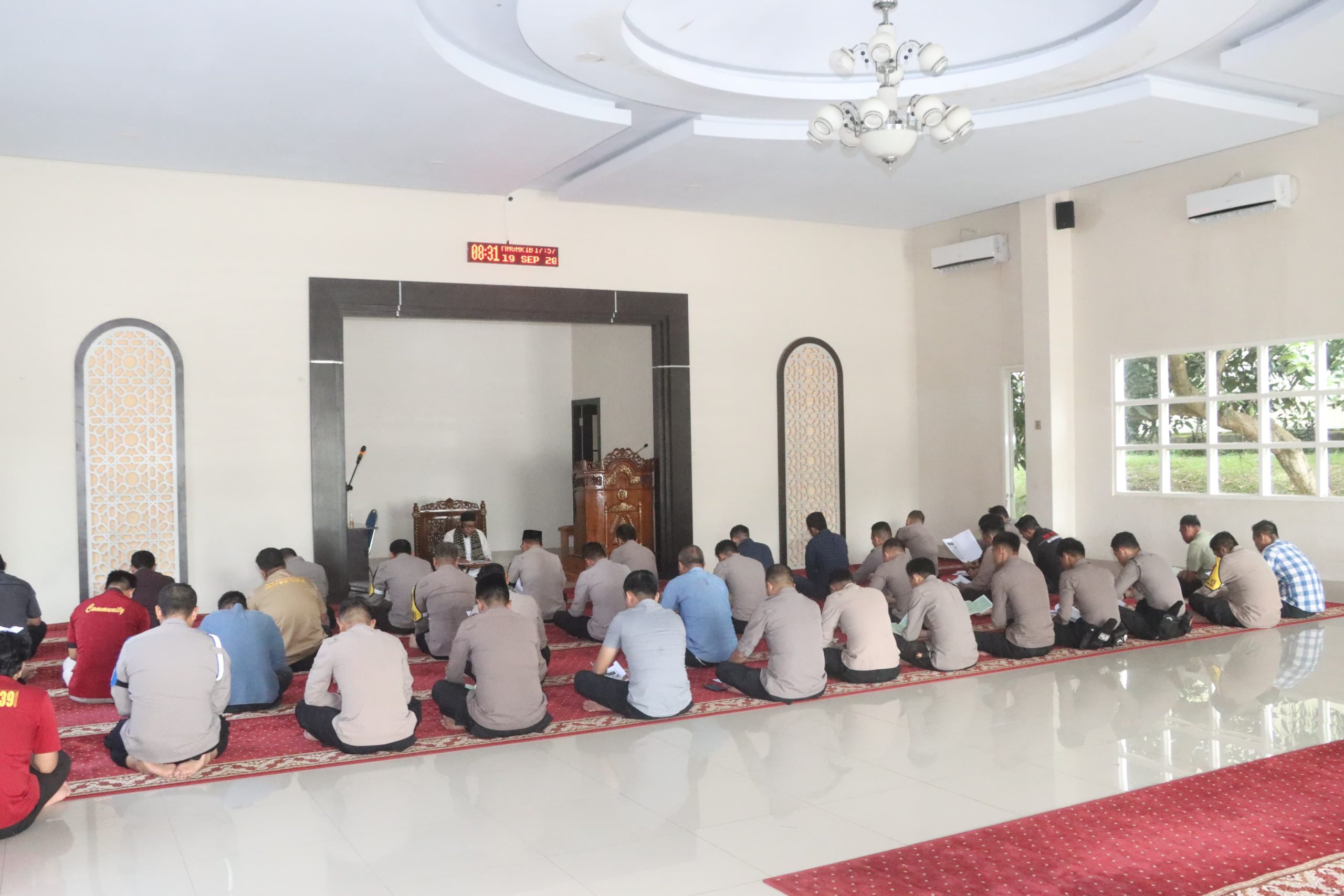 WAJO – Personel Polres Wajo mengikuti Bimbingan Rohani dan Mental (Binrohtal) yang di laksanakan di Masjid At-Taqwa Mapolres Wajo, Jl.Rusa, Bulu Pabbulu, Kec. Tempe, Kamis pagi (19 September 2024) sekitar pukul 08.15 Wita.