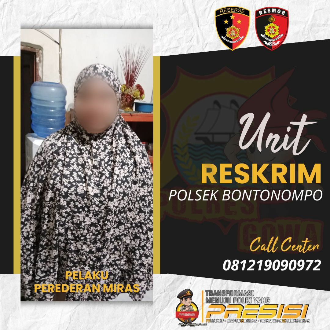 Unit Reskrim Polsek Bontonompo Polres Gowa kembali menunjukkan komitmennya dalam memberantas peredaran minuman keras (miras) di wilayah hukumnya. Pada Selasa malam, 13 Mei 2025, tim Reskrim berhasil mengamankan seorang perempuan berinisial EK (34) yang diduga melakukan peredaran miras jenis botolan, Kamis (15/5).