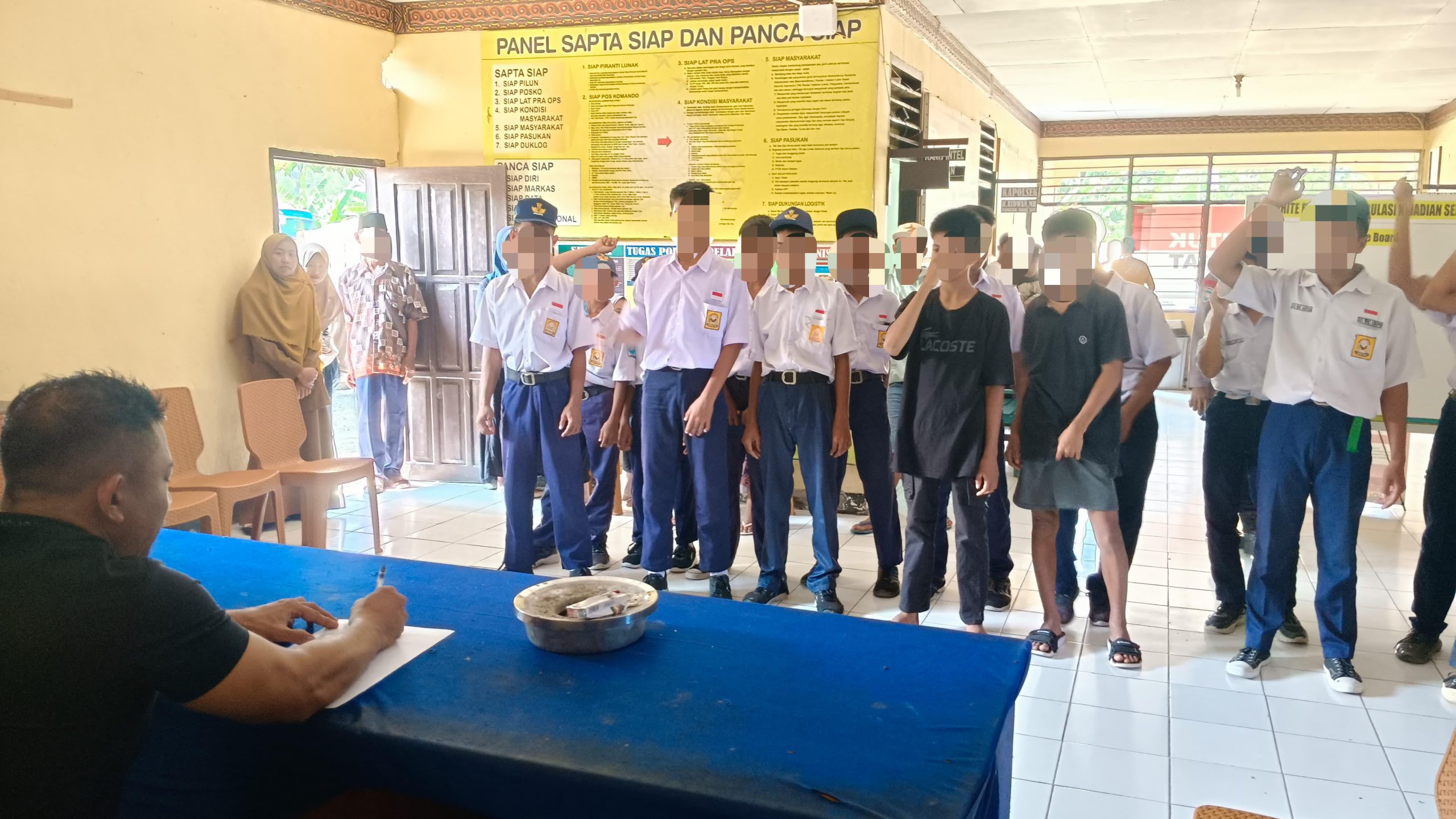 Pinrang – Polsek Lembang melalui Kanit Reskrim Aiptu Amrullah T. SH bersama sejumlah personel melakukan mediasi terhadap pelajar SMPN 1 Lembang yang terlibat dalam aksi tawuran, Senin (21/07/2025). Mediasi digelar di Mapolsek Lembang dan dihadiri oleh pihak sekolah, guru Bimbingan Konseling, serta para orang tua siswa.