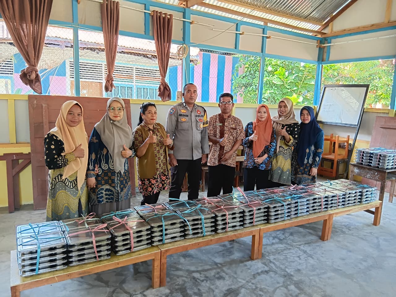 Agar penyaluran makanan bergizi gratis berjalan lancar dan tepat waktu, kegiatan ini didampingi langsung oleh Kepala Sekolah, para wali kelas, serta Bhabinkamtibmas Desa Lombong Timur.