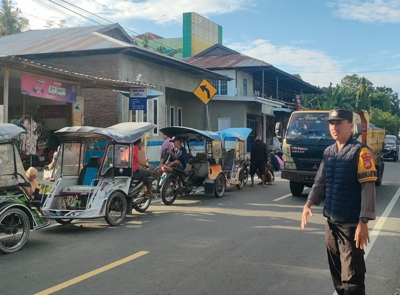 Polsek Pamboang Lakukan Pengamanan dan Pengaturan Lalin di Area Pasar Tumpah Bonde Utara