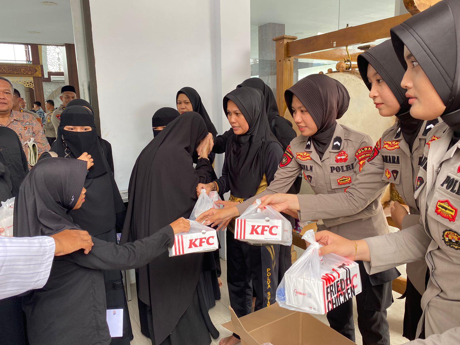 Tidak hanya fokus pada kebersihan lingkungan, Polwan Polda Sulbar juga menunjukkan kepeduliannya terhadap sesama dengan memberikan santunan kepada anak-anak yatim. Puluhan anak yatim diundang langsung ke Masjid Jabal Rahmah Mapolda Sulbar untuk menerima bantuan berupa makanan dan uang tunai.