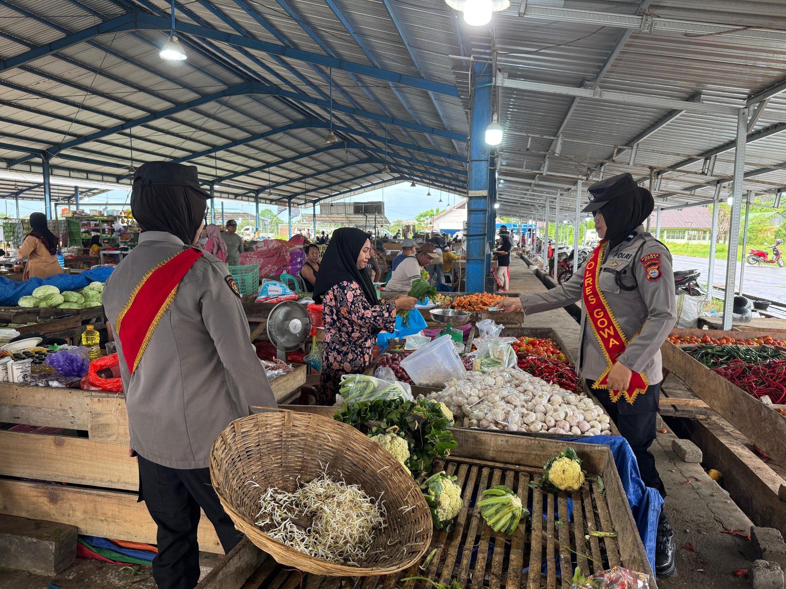 Selain itu, Polwan juga mengingatkan warga agar selalu menjaga kebersihan lingkungan pasar dan tetap berhati-hati dalam bertransaksi.
