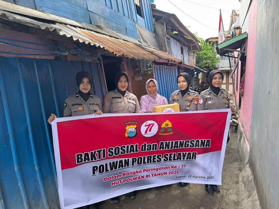 KEPULAUAN SELAYAR – Dalam rangka memperingati Hari Ulang Tahun Polisi Wanita (Polwan) ke-77, jajaran Polwan Polres Kepulauan Selayar melaksanakan kegiatan bakti sosial dan anjangsana, Kamis (28/8/2025) pagi. Kegiatan berlangsung sekitar pukul 09.30 WITA di Kelurahan Benteng dan diikuti oleh seluruh personel Polwan Polres Selayar.