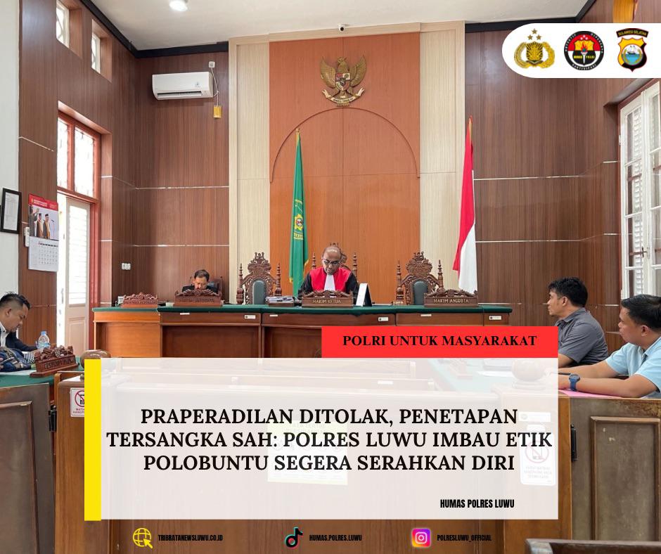 Praperadilan Ditolak, Penetapan Tersangka Sah: Polres Luwu Imbau Etik Polobuntu Segera Serahkan Diri