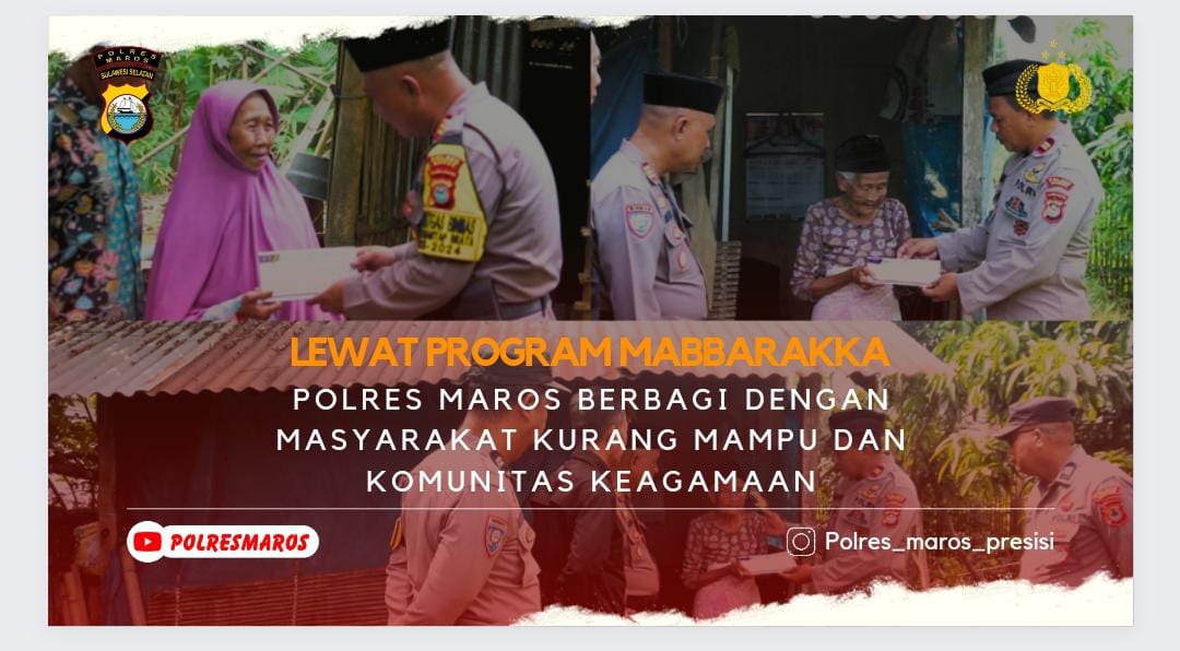 Kedatangannya ini untuk berbagi bersama masyarakat melalui program Mabbarakka, singkatan dari Polres Maros Berbagi dengan masyarakat kurang mampu dan komunitas keagamaan