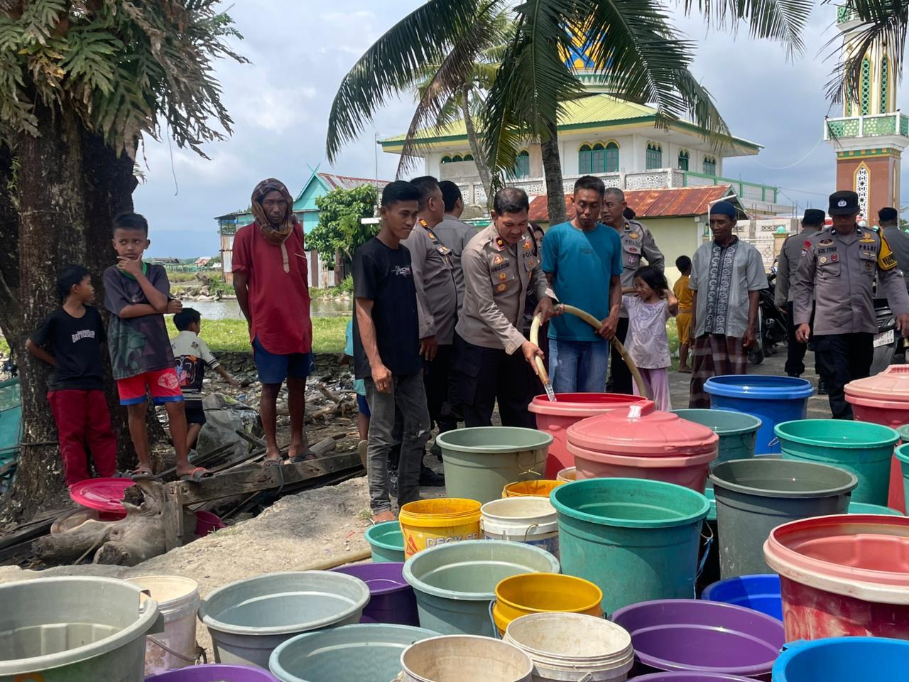 “Kegiatan ini merupakan implementasi dari program Polisi Penolong. Kami menerima laporan bahwa warga mulai kesulitan air bersih, sehingga kami kerahkan unit tangki untuk mendistribusikan air secara gratis. Kami pastikan bantuan ini akan terus berlanjut hingga situasi kembali normal.” Kata Wakapolres Kompol Ahmad Rosma S.H.
