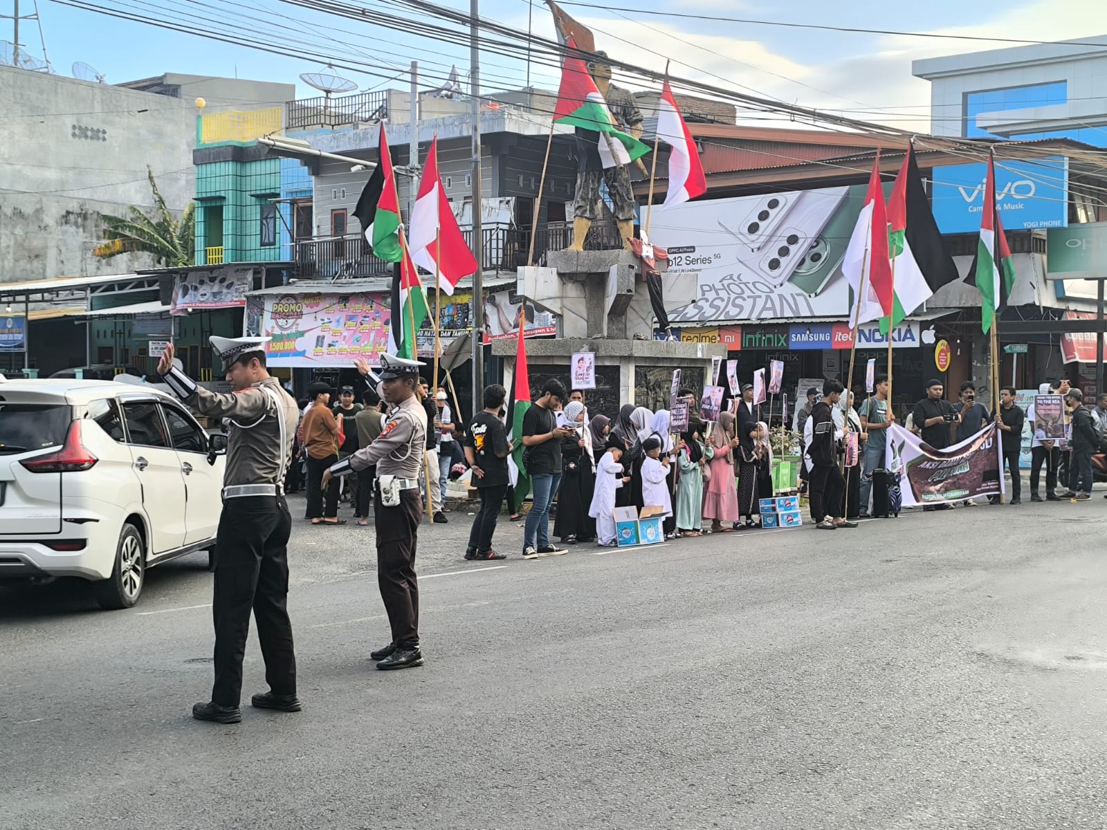 Puluhan Personel Polres Majene Amankan Aksi Damai Aliansi Gema Peduli Palestina di Tugu Juang