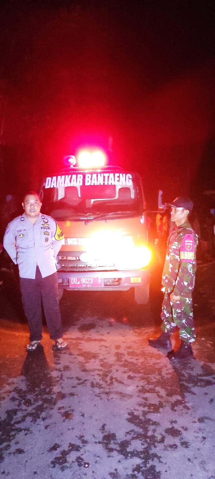 Setelah satu unit Damkar kab. Bantaeng tiba di tempat kejadian kebakaran dan langsung melakukan pemadaman di bantu oleh personil Bhabinkamtibmas dan masyarakat sekitar.