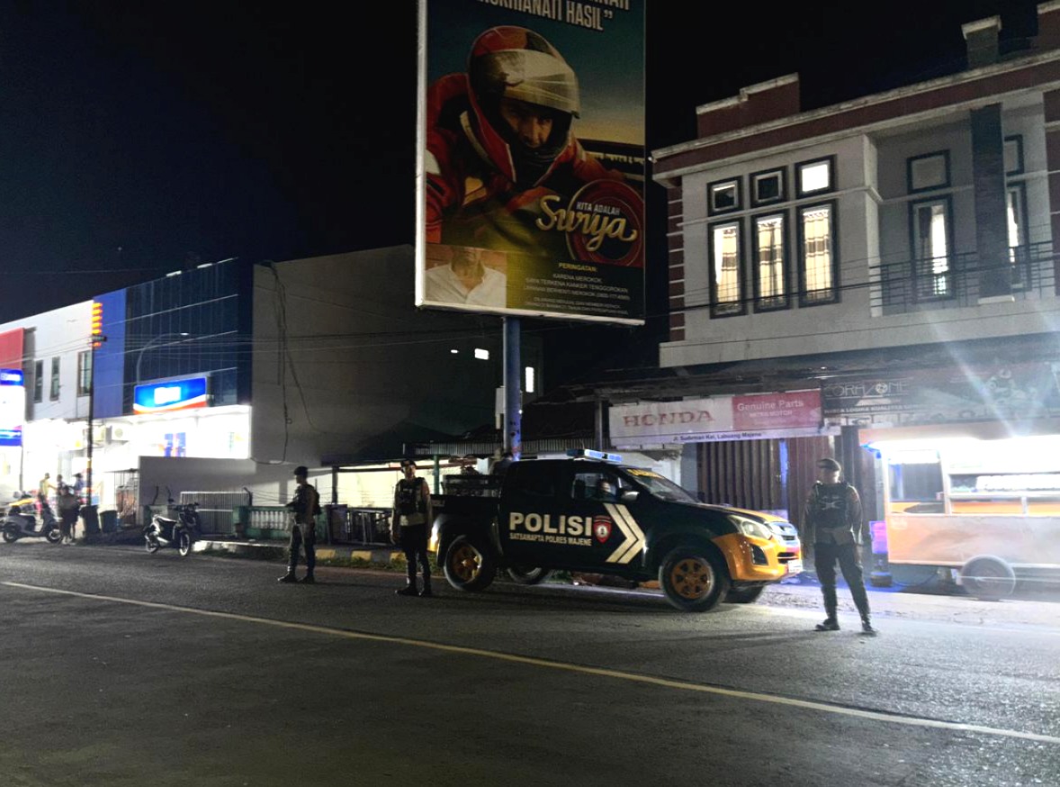 Polres Majene – Guna menjaga stabilitas keamanan dan ketertiban masyarakat, Satuan Samapta Polres Majene terus mengintensifkan patroli malam hari di wilayah perkotaan Majene. Patroli difokuskan pada titik-titik rawan, lokasi keramaian, serta objek vital guna mencegah terjadinya gangguan Kamtibmas, Kamis malam (22/1/26).