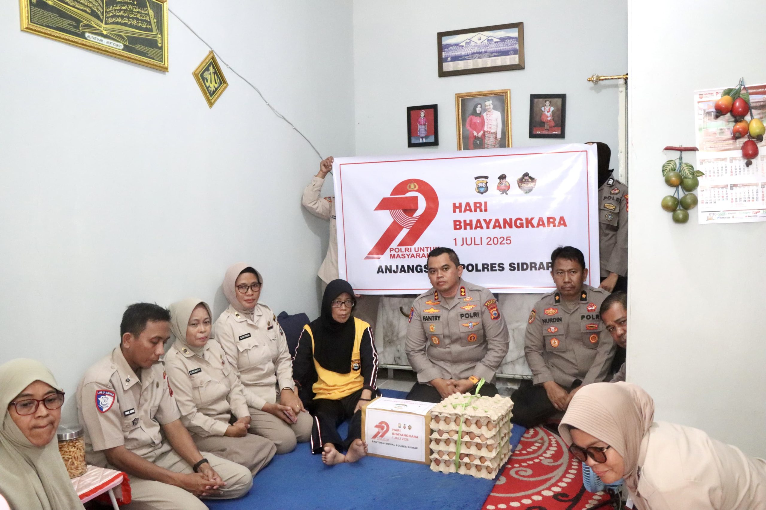 SIDRAP, – Menyambut Hari Bhayangkara ke-79, Kapolres Sidrap AKBP Fantry Taherong, bersama para Pejabat Utama (PJU) Polres Sidrap serta pengurus Bhayangkari Cabang Sidrap melaksanakan kegiatan Anjangsana sebagai bentuk nyata kepedulian dan penghormatan kepada keluarga besar Polri serta sesama. Kamis (19/06/25)