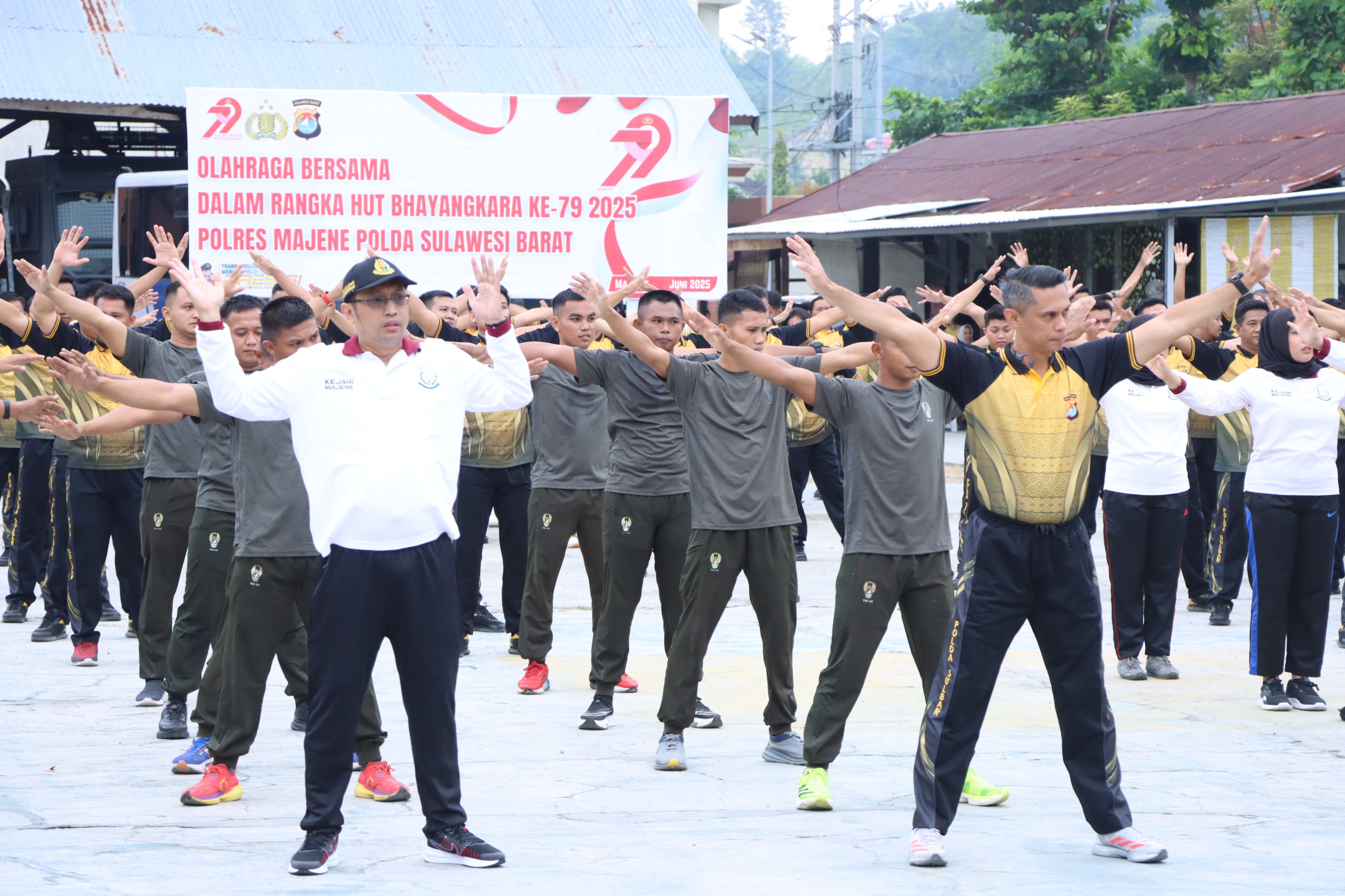 Sambut Hari Bhayangkara ke 79, Polres Majene Gelar Senam Bersama Perkuat Sinergitas Antar Instansi