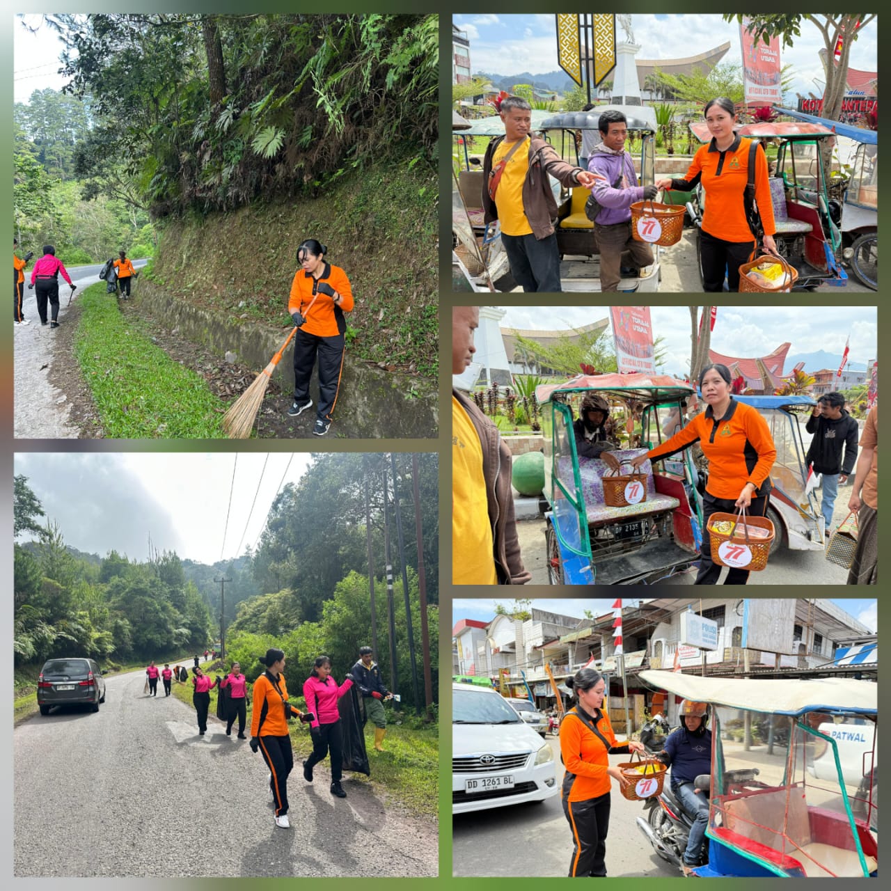 Diikuti langsung Ketua Bhayangkari Cabang Toraja Utara Ny. Indah Luckyto, para srikandi Polres Toraja Utara berjalan kaki menyusuri jalan sejauh kurang lebih 3 kilometer sembari membersihkan dan memungut sampah yang berada ditepian jalan.