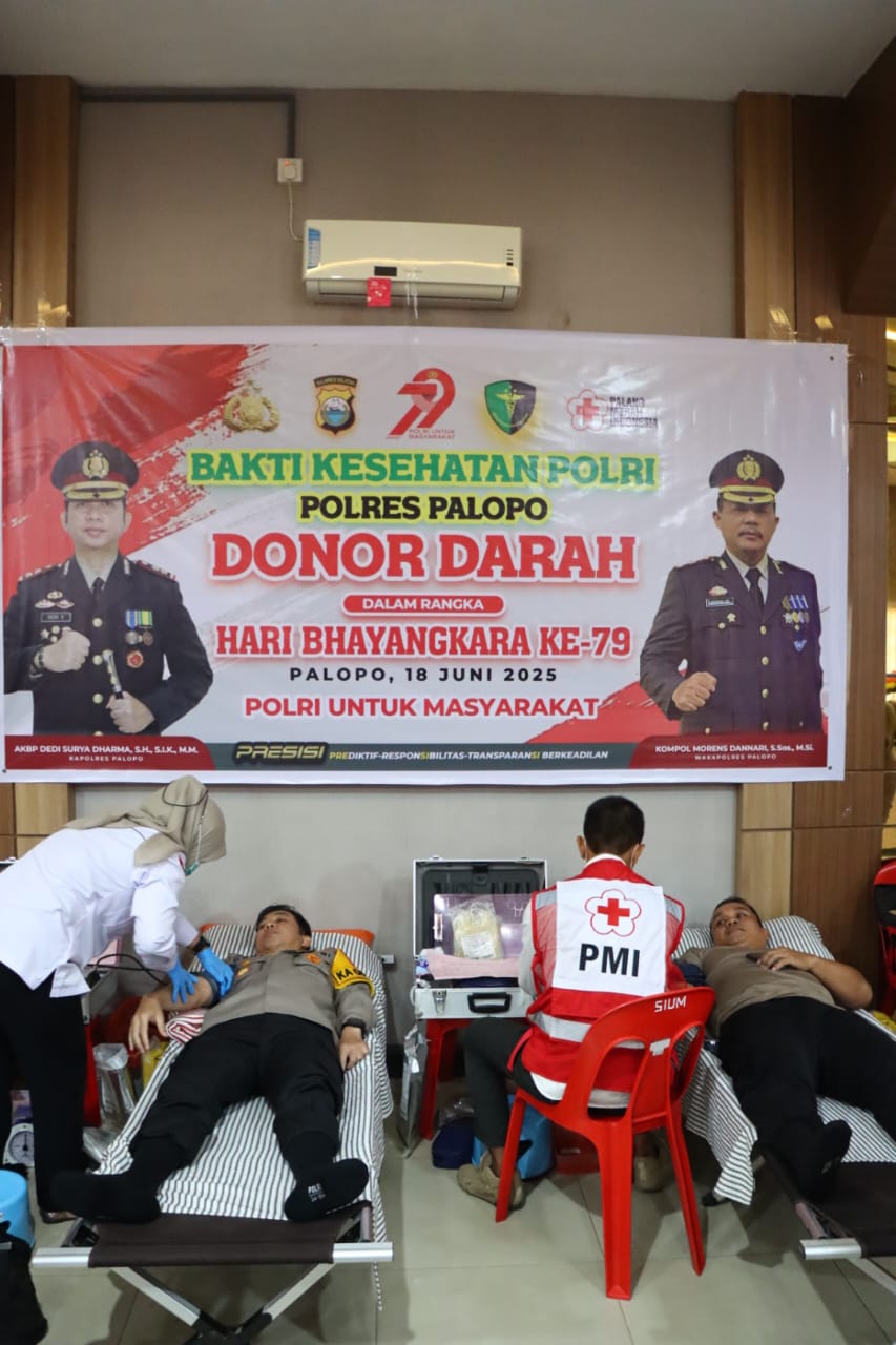 Palopo – Dalam rangka menyambut Hari Bhayangkara ke-79, Polres Palopo menggelar kegiatan donor darah sebagai bentuk pengabdian kepada masyarakat.